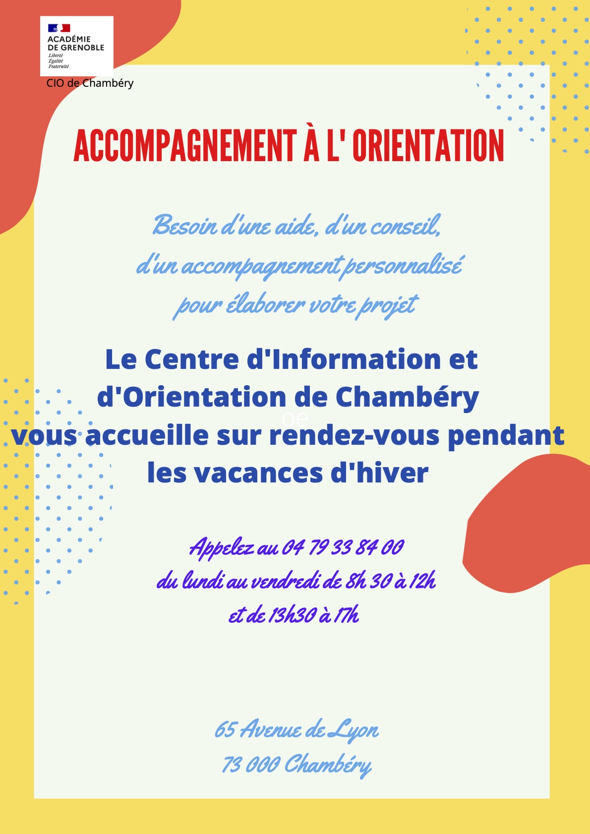 Le Centre d'Information et d'Orientation de Chambéry vous accueille sur rendez-vous pendant les vacances d'hiver.